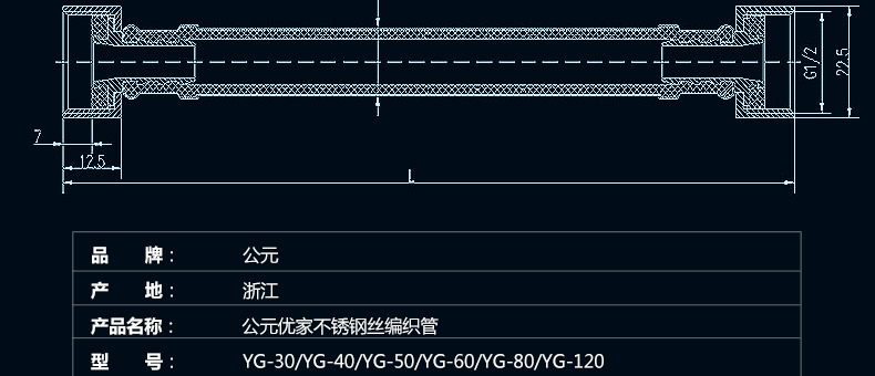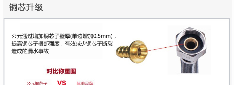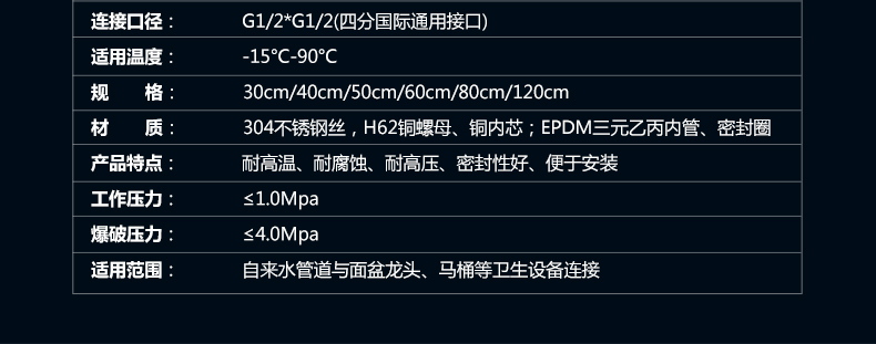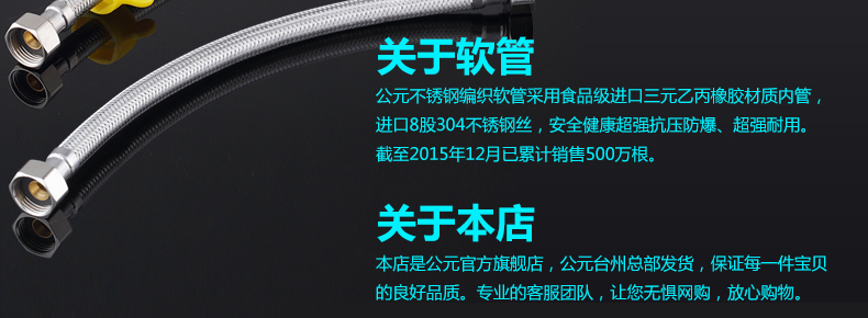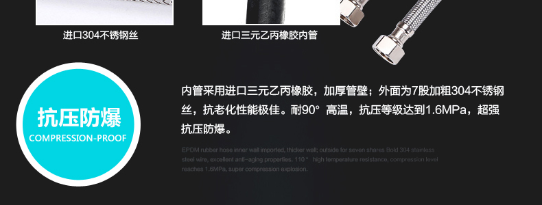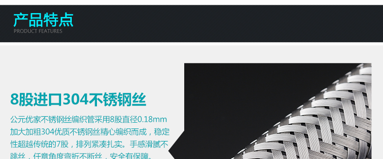 ERA公元马桶软管8股304不锈钢冷热进水防爆4分 热